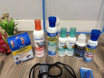 Random fish tank lot with lots of fish tank decor, all bottles have been opened so not completely full, also includes a heater and a water pump. Also including a 2 gallon tank I originally bought from petsmart, the lid has a light and it has a small filter which I have a couple filters to go with. Would like to sell everything together, a good little aquarium bundle. Selling for 70 obo please message my number or email for more information.