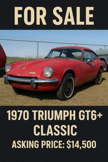 Classic British sports car with timeless fastback styling and manual shift. This GT6+ runs and drives great, ready for the road today. The interior and seats are in excellent shape, making it a comfortable ride with plenty of vintage charm.