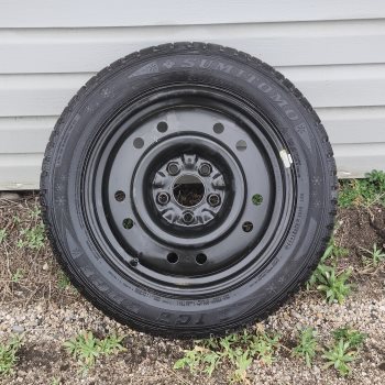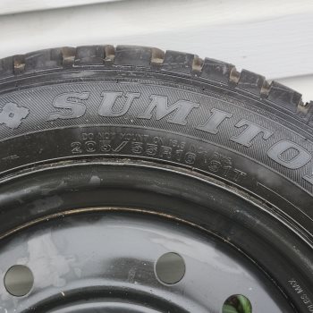 Set of 4 205-55R16 winter tires on 17 inch steel rims, used for a month, asking $700.00. Really good tires, bought new vehicle.