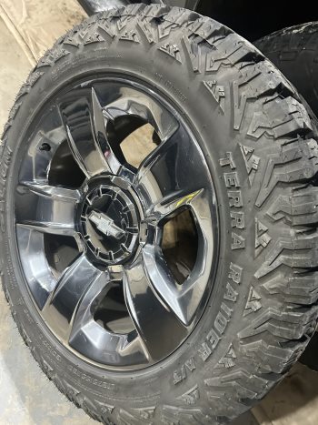 New terra raider 275/55/20 10 ply tires on 20”chev 6 bolt rims . Set of 4