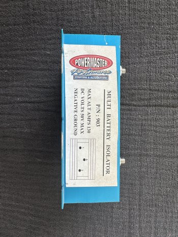 Reliable Powermaster battery isolator for dual-battery setups. Keeps your starting battery protected from accessory drain (audio, winch, lights, etc.) while allowing proper charging from the alternator.