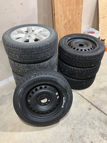 4 - 215/55/16 ($150) Winter tires on steel rims. Enough tread on tires for this winter. No longer own car so not needed. Cash only. Text for fastest response 204-901-2779. Located in Brandon.