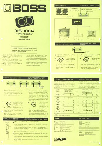 2 BOSS MS-100A speakers. (See pic for specs) includes short mic stand for each. Ideal for band work as outputs or monitors.