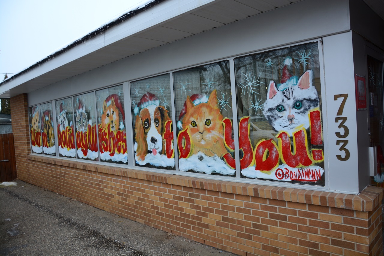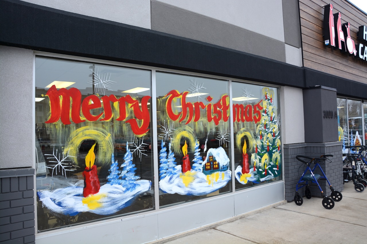 Every year for more than two decades as the holidays approach many local businesses and organizations hire the local artist to bring their windows to life with paintings of holiday scenes and greetings.