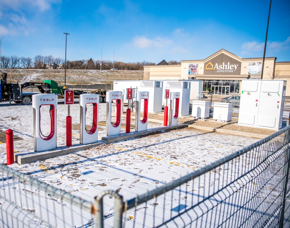 Less than a week after the city’s first EV fast charging station went live at the site of Petro-Canada’s Highland Avenue station, a crew appears to have completed installation of Tesla’s long-anticipated Supercharger in a section of the Corral Centre property.