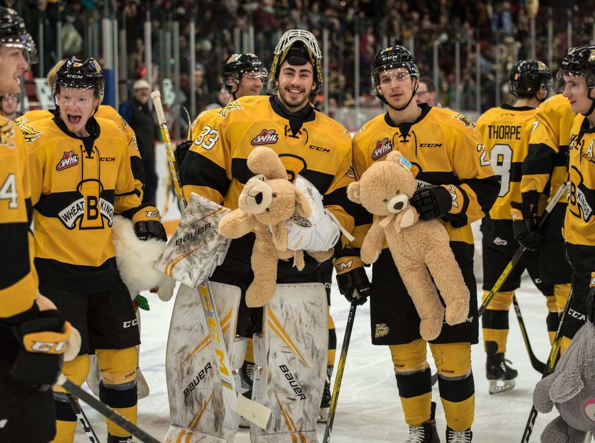Brandon Wheat Kings forward Ridly Greig beat Moose Jaw Warriors goaltender Adam Evanoff at just 2:59 into the 1st period, triggering one of the most fun and memorable moments of the Brandon Wheat Kings’ season in the club’s annual Teddy Bear and Toque Toss at Westoba Place on Friday night.