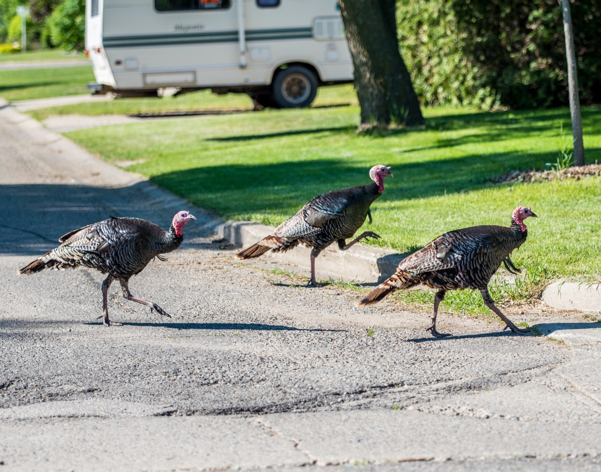 Turkeys are drawn to urban areas by an abundance of food such as bird feeders, large trees for roosting and the lack of presence of predators. According to the provincial spokesperson the total turkey population in Brandon isn’t known, though flocks of 10 to 20 are common with flocking in larger groups said to be more typical in winter. Brandon’s overall population isn’t viewed as being particularly large in comparison to some flocks in rural areas whose numbers can reach as much as 200. There’s thought to still possibly be an additional flock of about 20 in the city and a smaller group of three.
