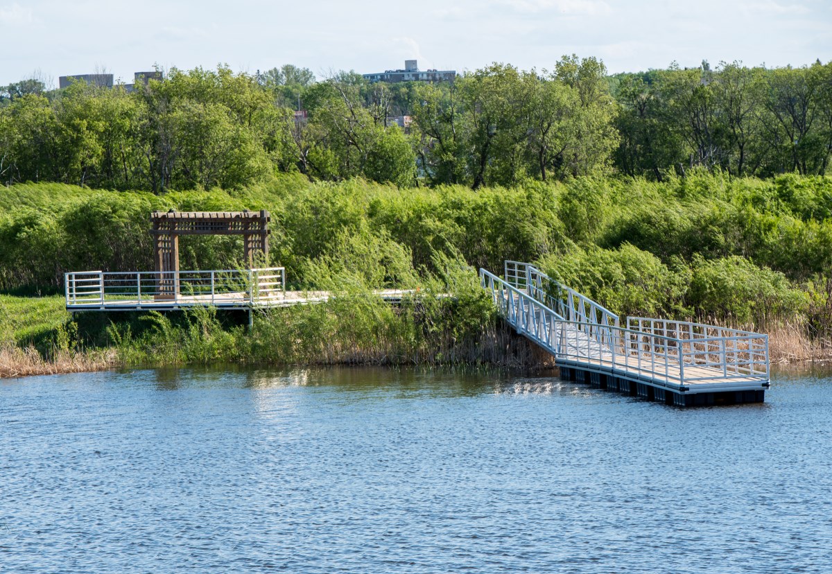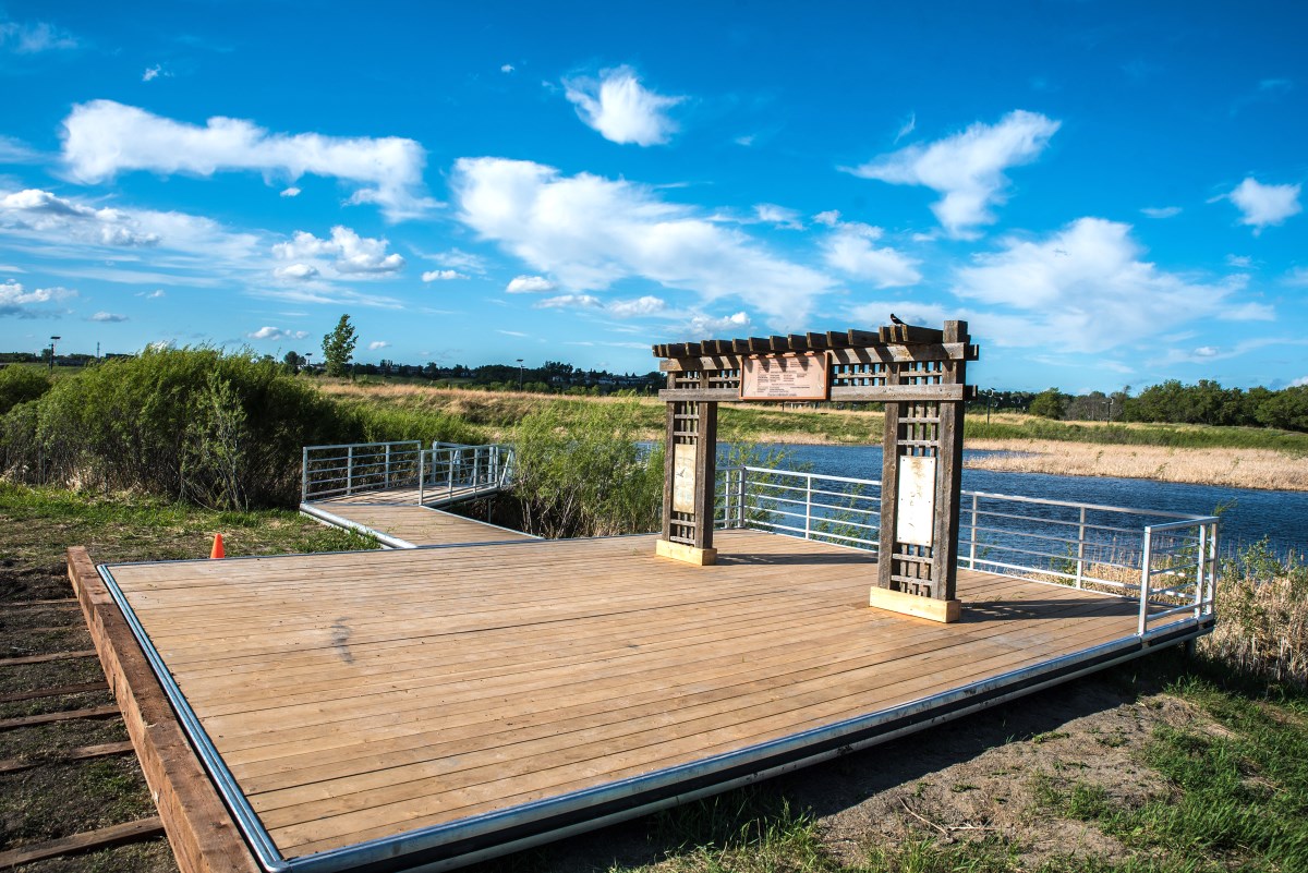 During the day on Friday the finishing landscaping touches were being put on a renewed trail that leads to a newly constructed floating dock within the wetland area. By Friday evening the new addition was available for use, providing a great chance for visitors to the Riverbank area to get up close and personal with much of the natural surroundings in the area.