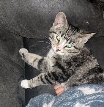I have a 5 month old female kitten, she is litter trained, goes outside. She is very friendly. Very good with my 2 year old hauling her around!