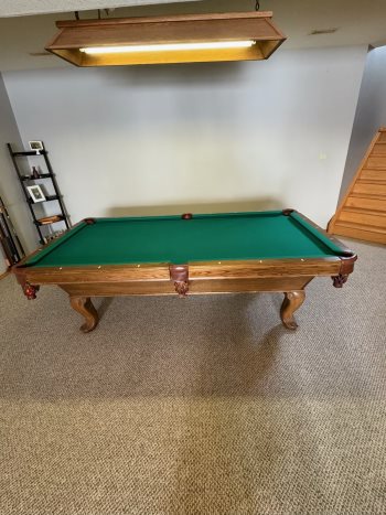 This is a slate custom built pool table from Jordon billiards a beautiful piece of furniture they built it for me 25 years ago and they are still going strong. It will be professionally dismantled and set up by Jordon billiards. It comes with everything you need to get playing light cues and holder cover balls chalk. I'm selling for 1/2 of original price just to move fast our children have purchased our Ranch and would like to have it moved as soon as possible it is 4x8.
