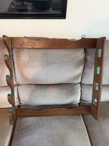 For Sale: Gun Rack or Fishing Rod Rack. Will hold four guns or four fishing rods.In excellent condition. Asking $60.00. For quickest response call or text to 204-729-1281.