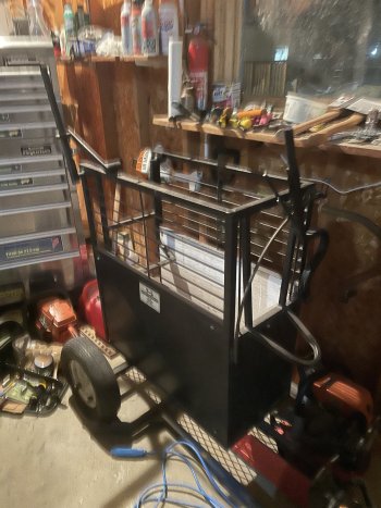 Calf chute in good condition, no scale. Works great for putting D-horn paste on. Also good for hauling newborns to the barn. Rolls on wheelbarrow type tires. Sold cattle, don?t need.