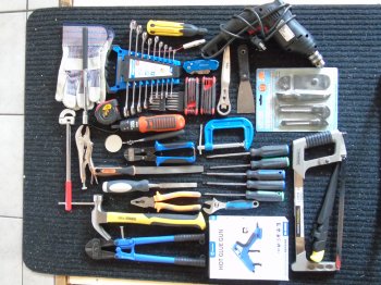 Assorted tools, Grinder, Glue Gun & Heat Gun.