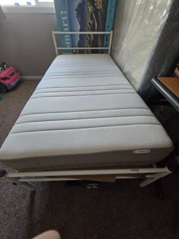 Selling twin-size mattress and metal frame sets in excellent condition.