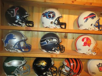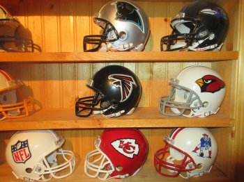 Have always been on display.....very good condition. Asking $15 for each helmet.