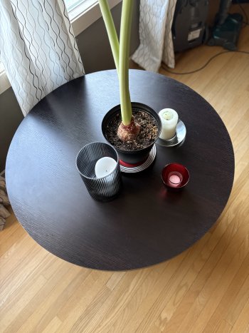 Dark brown round table set in very nice condition.