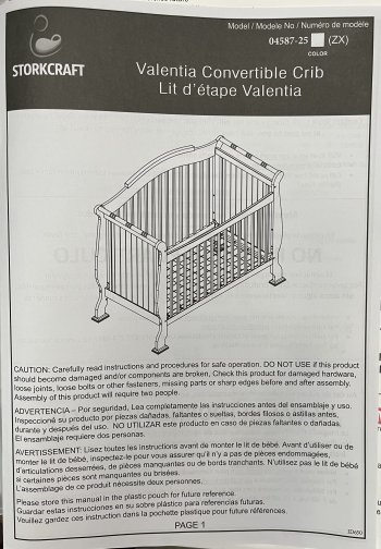 Good used condition. Storkcraft Valentia convertible crib, comes with mattress and cover and original manual, disassembled.