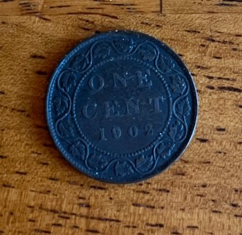 Better grade 1902 Canadian large one cent piece minted in 1902 during the reign of King Edward VII. The coin is in decent shape and has an attractive patina.