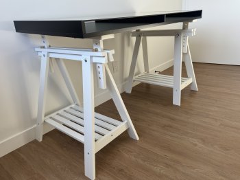 Hobby / Crafting Desk for sale. Very unique desk, great for multi-purposes. Fully adjustable for height and pitch. In perfect condition. Glass top with convenient shelf underneath for all kinds of supplies.