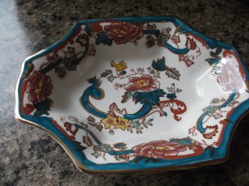I have a set of dishes. The trinket dish is about 2 and a half inches. The vase is 4 inches high, the 2 plates are about 4 inches in size and the dish is 6 and 1 half inches by 5 inches. These dishes are made by Masons. The Java collection. Printed and hand painted. They look to be a rare find as searched under Etsy. I am asking $100.00 for the set.