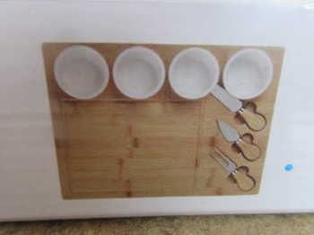 Bamboo Board, 4 Melamine Condiment Bowls & 4 Cheese Knives. Never used.