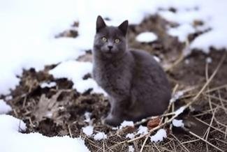 Pregnant grey outdoor cat. She's around 4 years old and gets along with other cats and dogs.
