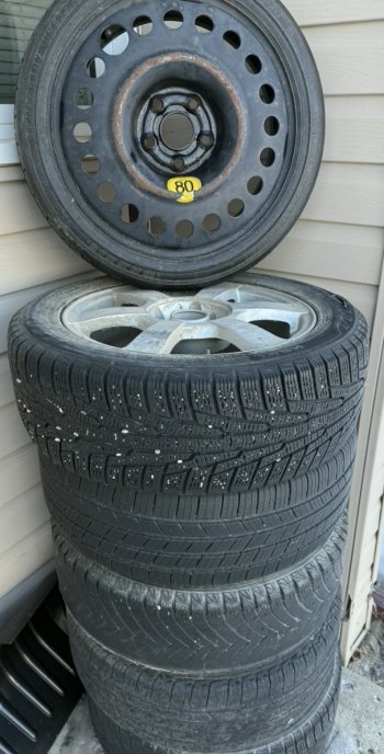 2 winter tires and 2 summer tires and a spare tire with alloy rims. The size is 205/55 R16 and you can get everything for $125 OBO. CASH ONLY PLEASE!! The tires are in Brandon. The ad below tires and rims are the same ad I just don't know to get it off.
