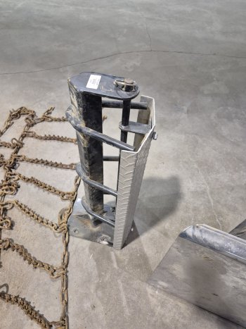 Two sets of used tire chains for duals, 24.5 tire size. One used tire chain hanger. Located near Altamont, Mb.