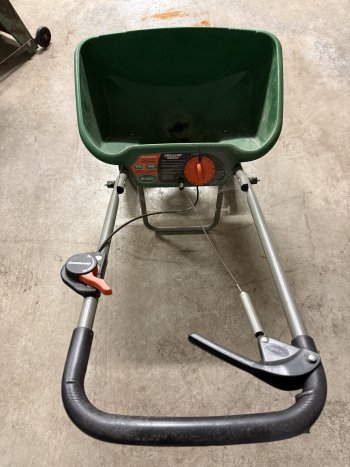 Scott Deluxe Edgeguard Spreader for sale. In good working condition, easy to use with lots of adjustment to fine tune your fertilizer application.