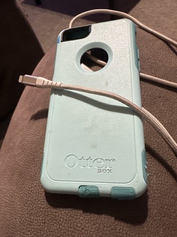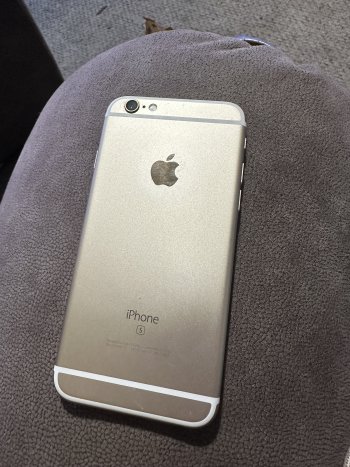 Gold iPhone 6S. Comes with charging cord and blue Otter Box case.