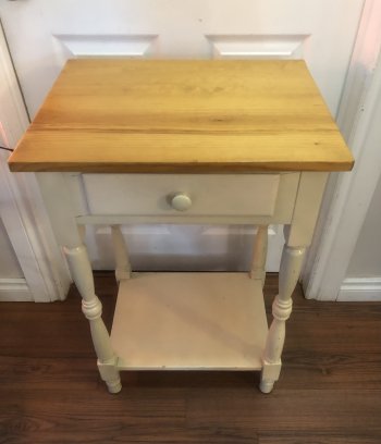-Has A Cream Painted Base With Natural Wood Top