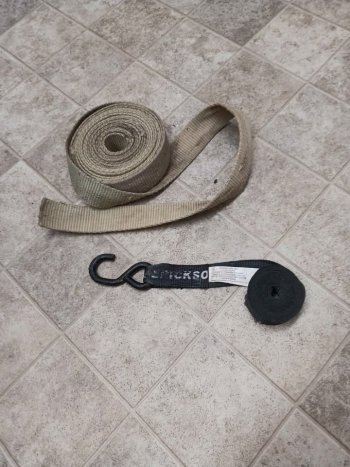 1.5? wide x 12 ft. Erickson Strap with 1 Hook & 2" wide x 15 ft. Strap with no Hooks