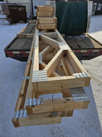 New Engineered Wood Web floor trusses 16? deep ranging in length from 10?6? to 25?6? for sale. $100.00 for the lot.8 pcs total. Pick up in Brandon.