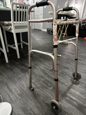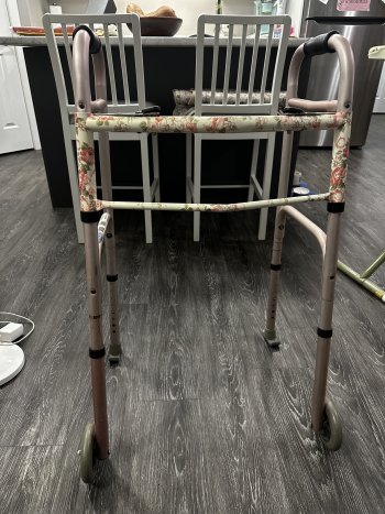 Ladies pink & floral folding walker