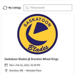 One adult Wheat King ticket for February 16 game E-transfer and Ticketmaster transfer only.