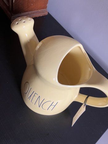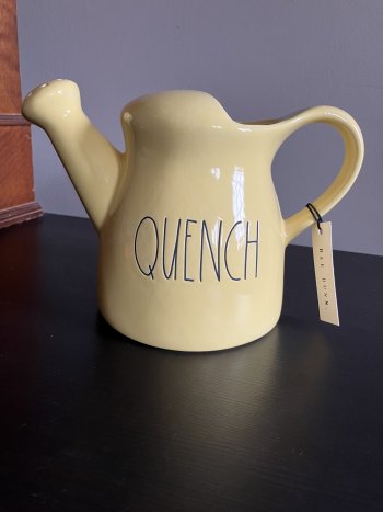 Rae Dunn Yellow Watering Container with text ?Quench?