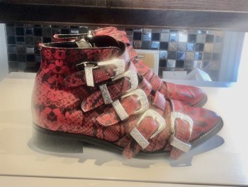 -Awesome Leather Red & Black Python Snake Skin Design