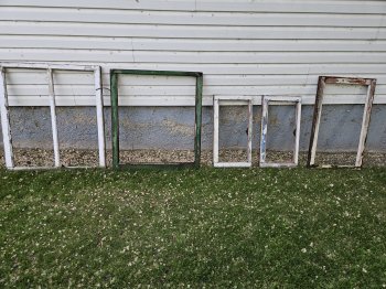 Old wooden windows and window frames for sale. Lots of shapes and sizes. With and without glass. Would work good for greenhouse, treehouse, garden shed, add mirrors etc.