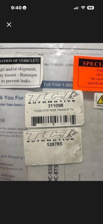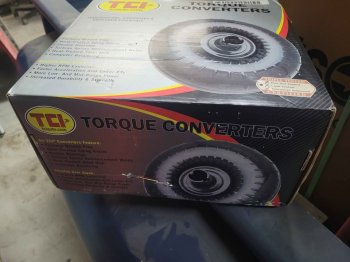 TCI Automotive TH350 transmission with 2200-2400 behind a small block, 2400-2600 behind a big block high stall converter. This transmission and converter were purchased new a few years ago and the car only has about 2000kms on it since restoration completed. Everything works as it should....Capable of handling up to 450HP. Comes with kick down cable and has temp sensor installed in oil pan. This transmission was installed in a 1972 Camaro.