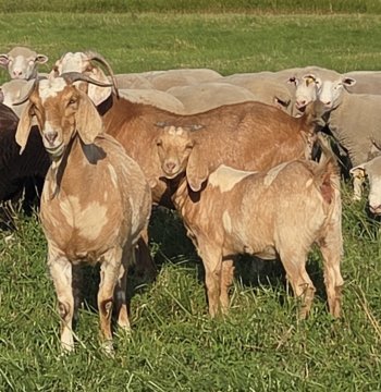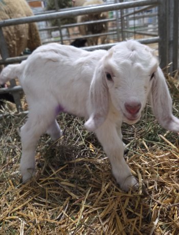 Kiko x boer - white, with dapple genetics.