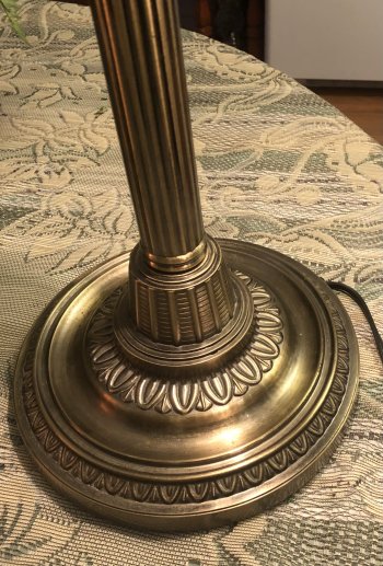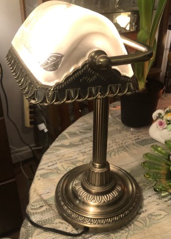 Mid Cent Bankers Brass LampOrnate FrostedEtched Glass Shade