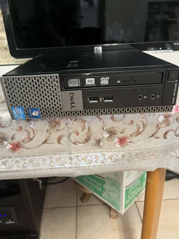 Small Dell optiplex 7010 compact desktop computer for sale, includes monitor, speakers, keyboard, and mouse, only $100.