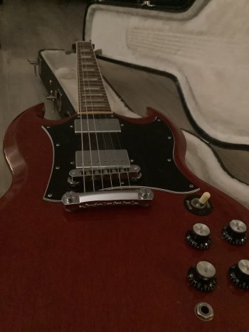 OPEN TO OFFERS, CAN NEGOTIATE 2010 Gibson USA SG Standard, with Made in Canada Hard Case. Original owner, guitar is well played but in decent condition. Has mostly minor marks on edges, most significant damage is a small piece missing from the back of the bottom cut away.