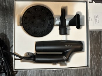 New Paul Mitchell NEURO DRY+ hair dryer. Black color. Comes with all the magnetic attachments: concentrator, diffuser, and pik.