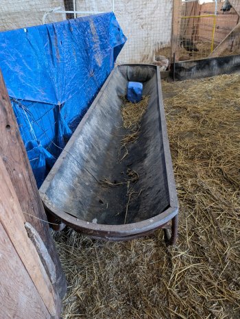 10 ft. Bunk feeders made of heavy pipe, sturdy plastic lined, 2 Available if we can get the second one out of the snow.