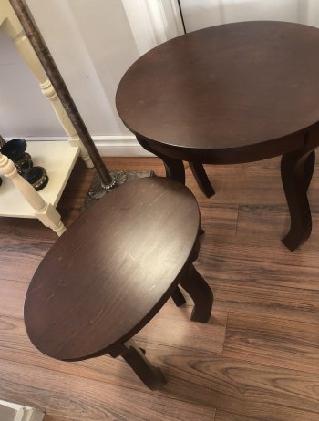 -One Smaller One Had Some Stains On Top (Last Pic) But Has Been Touched Up With Some Stain So Does Look Nicer But Could Be Redone If One Likes