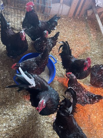 I have 6 roosters and 6 hens hatched april 2025 and 3 cockerels and 3 pullets hatched november, the pullets and cockerels have been introduced to the older ones, would like them all gone asap so willing so navigate a price for them. The roosters are all friendly and don?t attack people