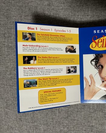 Seasons 1-9 of Seinfeld on DVD (complete series). All discs are here, no scratches. Outside cover is a bit banged up but doesn’t affect inside!