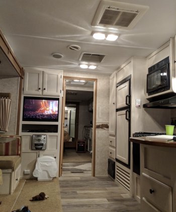 32 ft long. Brand new electric awning. Installed a new air conditioner a few years ago. Propane furnace heat.
