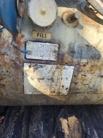 74.3 gallon propane tank. Was in the bed of a 92 Chevy pickup.